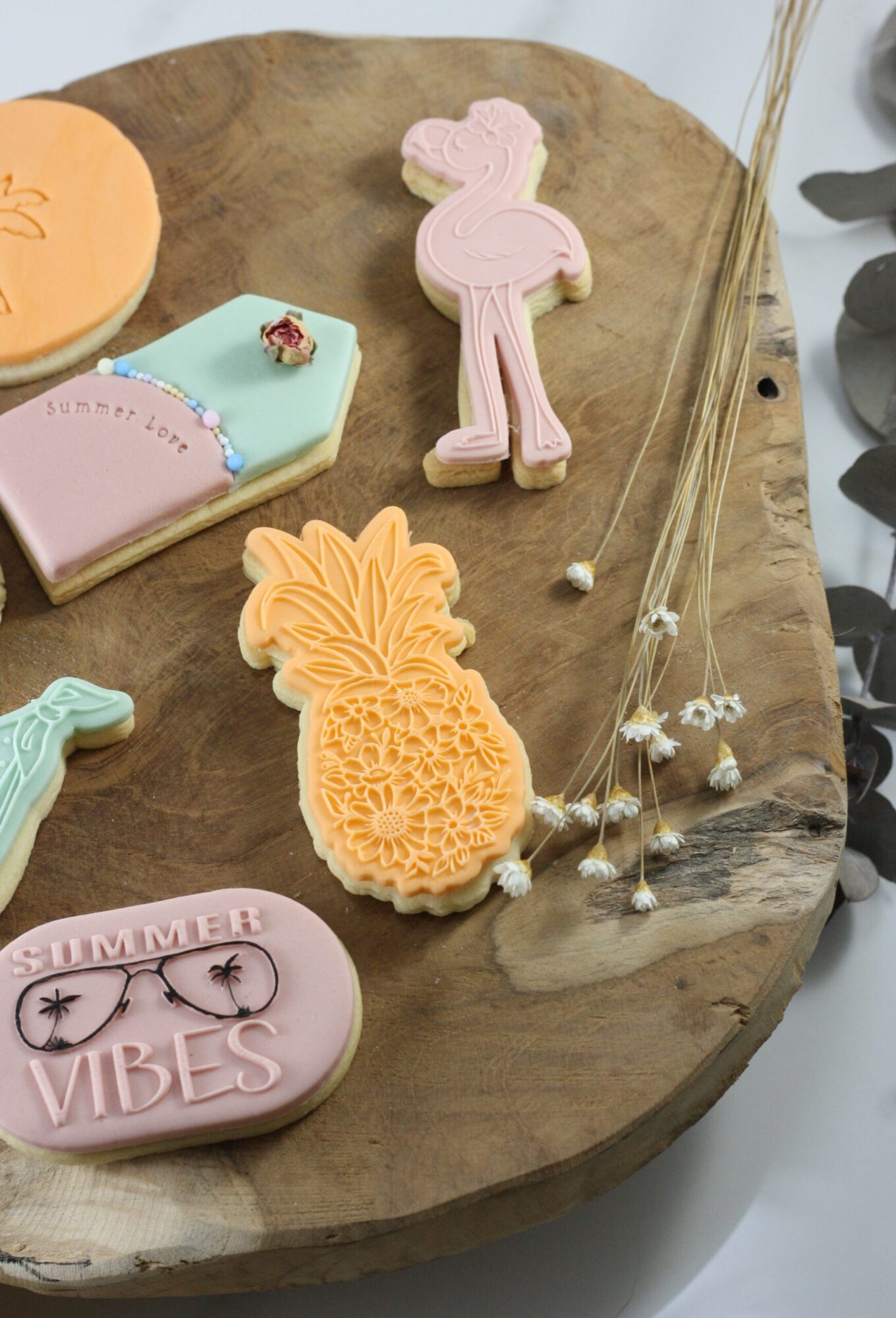 Voor een extra zomerse touch kun je gekleurde fondant gebruiken. Kleuren zoals geel, blauw, groen en roze passen perfect bij het zomerse thema en maken je creaties nog feestelijker. Combineer verschillende stempels en kleuren voor een speels en uniek resultaat dat zeker in de smaak zal vallen bij je gasten.