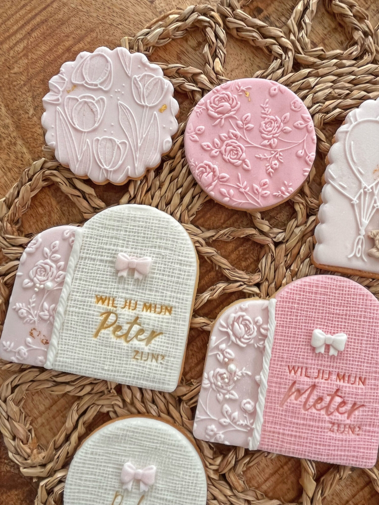 Een fondantstempel met dit thema biedt talloze mogelijkheden om je bakcreaties te personaliseren. Je kunt kiezen voor een eenvoudige tekst zoals “Wil je mijn meter zijn?” of “Wil je mijn peter zijn?”, of je kunt een meer gedetailleerd ontwerp met symbolen en figuren selecteren. Het gebruik van een fondantstempel is heel eenvoudig: rol de fondant uit, druk de stempel erin en je hebt een prachtig reliëf dat je taart direct een professionele en unieke uitstraling geeft.